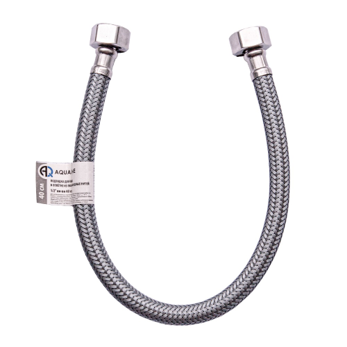 Гибкая подводка для воды AQUALINE предназначена для подсоединения бытовых и сантехнических приборов в системах горячего и холодного хозяйственно-питьевого водоснабжения. Внутренняя трубка гибкого шланга изготовлена из этилен-пропиленового каучука СКЭП (EPDM), покрытого оплеткой из пяти полиамидных нитей (Полиамид ПА6)). Концевая арматура (гайка, штуцер, обжимная гильза) выполнены из нержавеющей стали 08Х18Н10 (AISI 304).