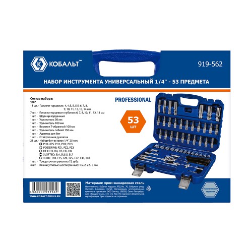 Набор инструмента универсальный 1/4" (53 предметов) КОБАЛЬТ (919-562)