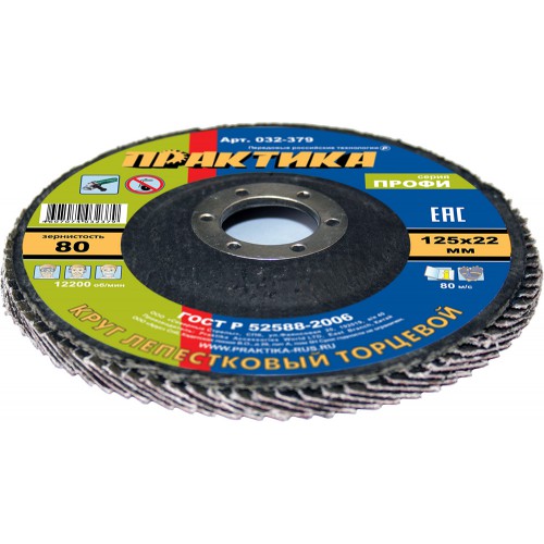 Круг лепестковый шлифовальный 125х22 Р80 ПРАКТИКА Профи (032-379)
