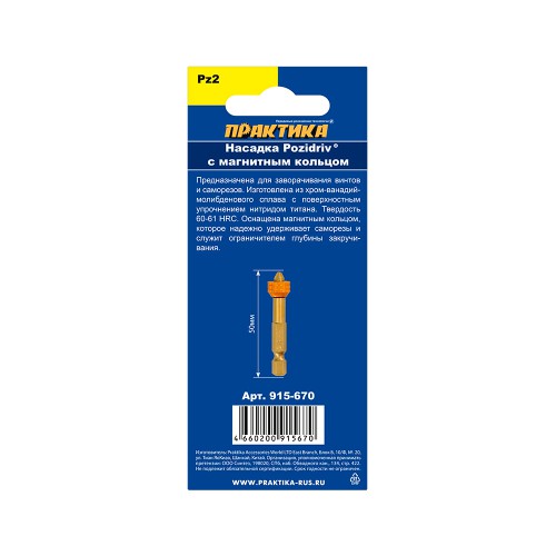 Насадка для самореза РZ2 50мм Практика "Эксперт" (915-670)