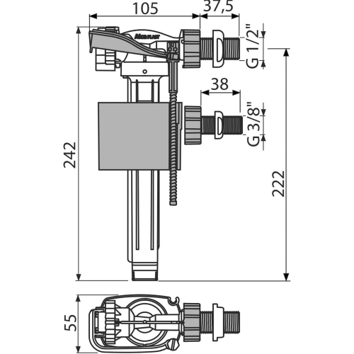 Клапан шаровой для унитаза горизонтальный универсальный 3/8-1/2 ALCAPLAST пластиковый